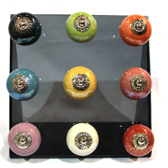 Featuring a sophisticated design, this glossy, spherical handmade knob adds a touch of luxury to your household decor. Adorned with a patterned decoration in the center, this knob flaunts a vintage style. Fitting a range of furniture such as drawers and cabinets, this knob allows you to adorn your home in a subtle, effortless manner.