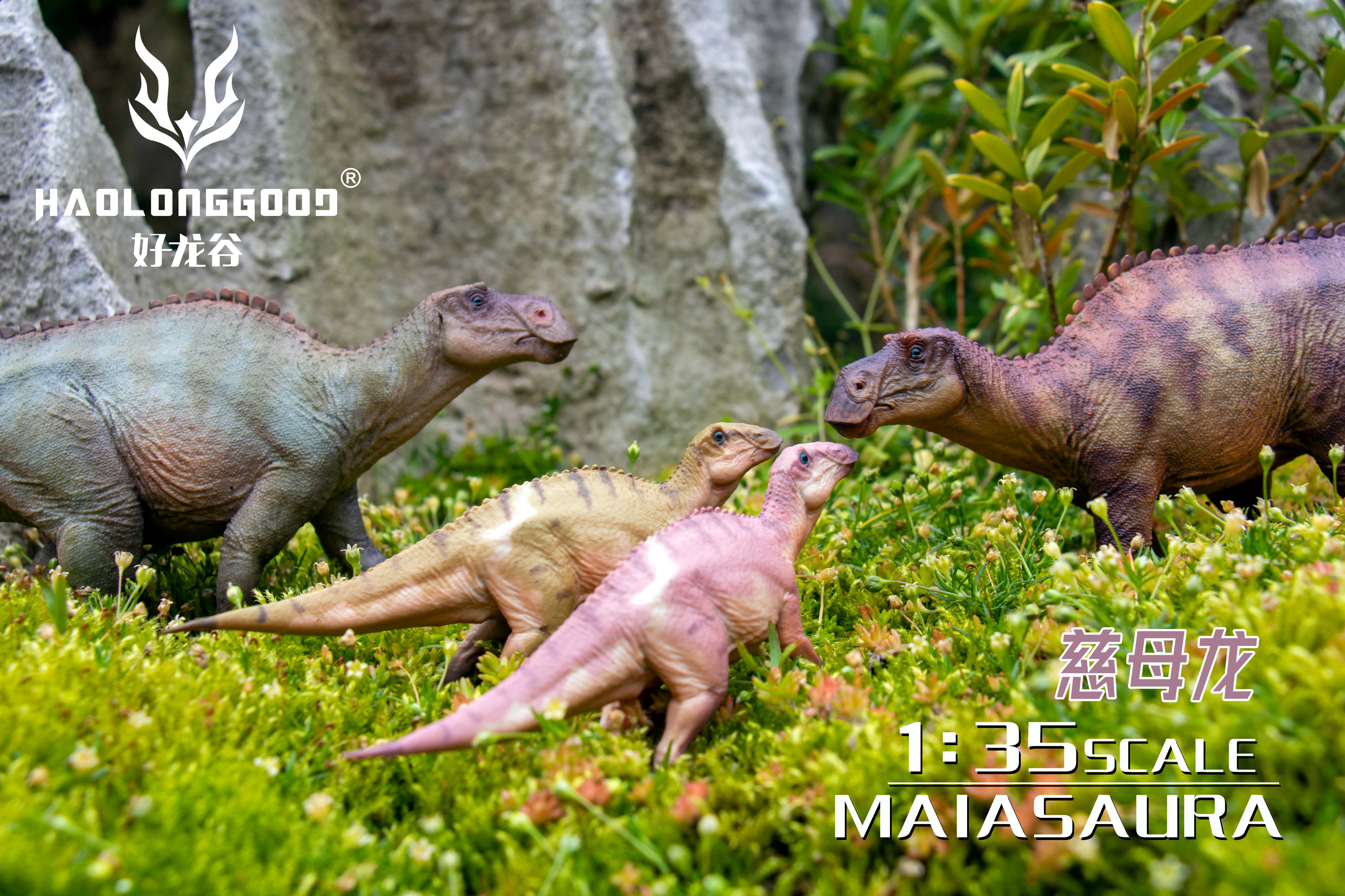 Haolonggood Plastic Simulation Solid Maiasaura Pvc Meandering Educational Dinosaur Toys For Kids Assembled Decoration Animal