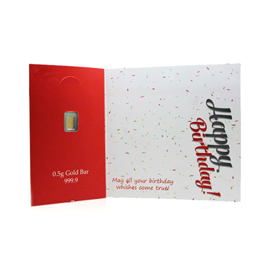 The stunning gift card comes with a 0.5g gold bar inside. It features ample space for you to write down your messages inside. It is a perfect gift to commemorate your loved one's birthday or other special occasions.