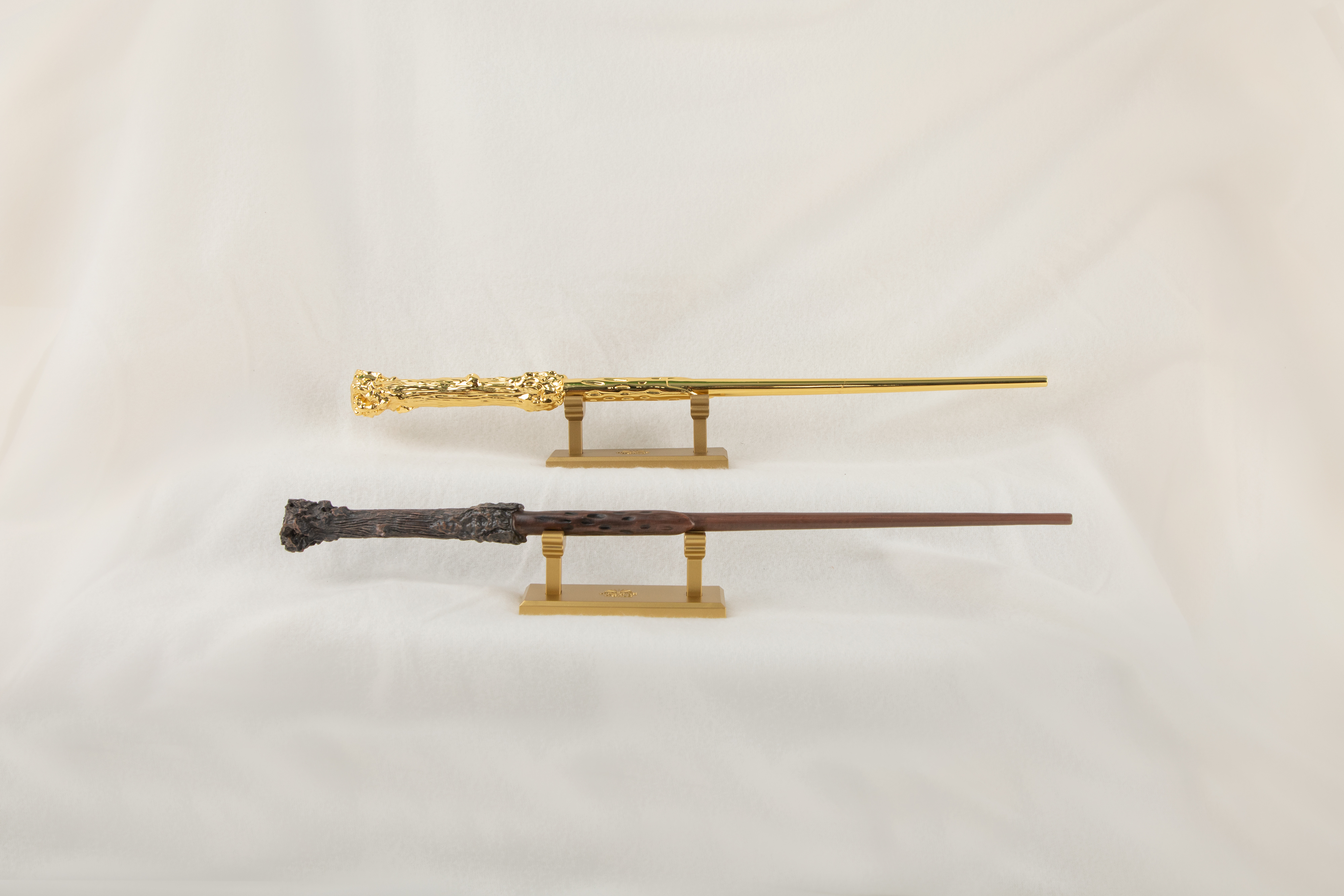 The Collector collection presents a premium polyresin wand in a magnetic box with a unique outer print with gold stamping and lined with a soft suede cushion as well as a golden wand stand.