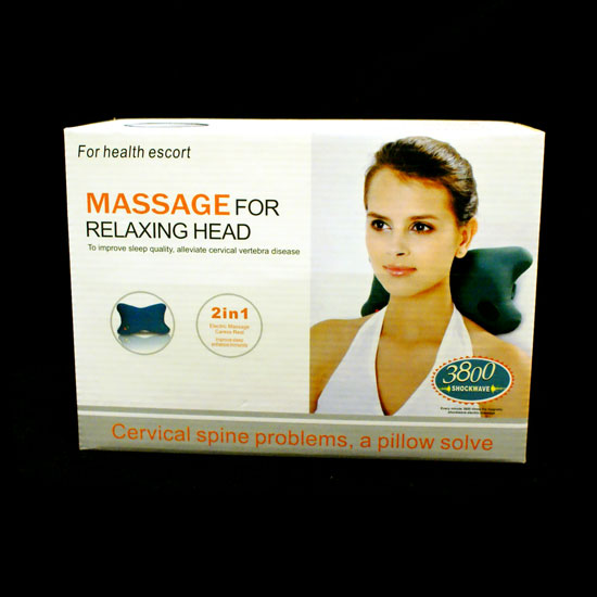 Featured is a massager designed to fit the neck and head. The massager helps to improve lumbar blood circulation and eliminate your waist sour backache. It is filled with food grade cotton for enhanced comfort.