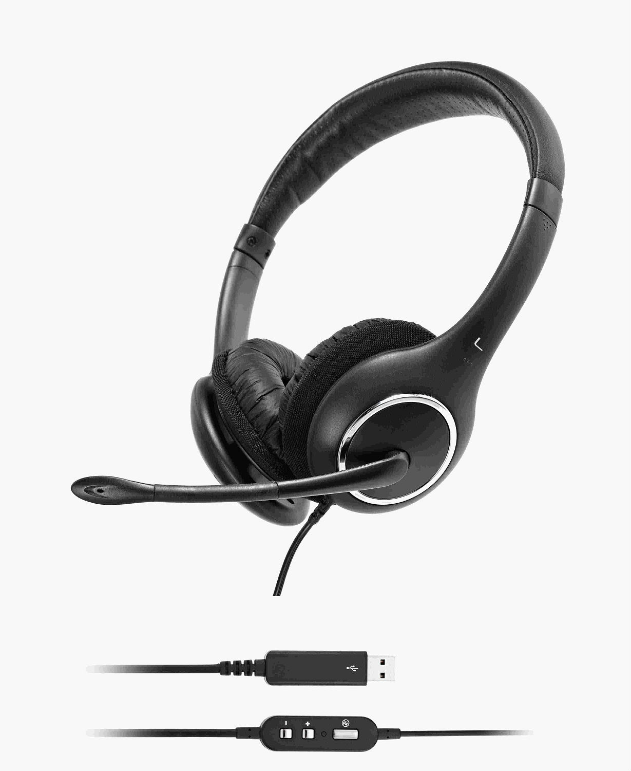 Featured here is a headset with built-in volume control function. It flaunts a 40 mm driver unit with a boom microphone. The 6 feet cable has a USB stereo plug and comes with buttons for control.