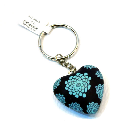This is a key chain in heart shape. Embellished with refined patterns, the key chain presents a sense of delicacy. This heart keychain is easy to attach.