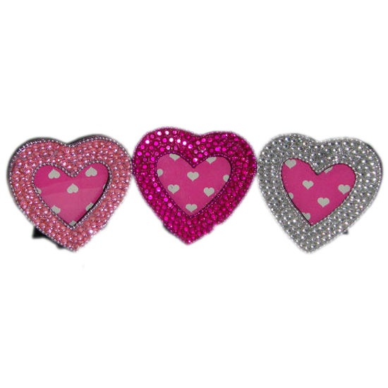 This is a photo frame with a heart-shaped design. The glittering accents present added glamour. It is ideal for presenting the memorable moment.