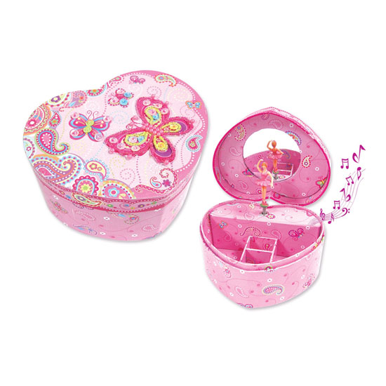 The jewelry box is designed in a sweetheart shape with musical function. The jewelry box is beautifully adorned with butterfly patterns on the surface. It is sure to surprise your beloved when she opens this box.