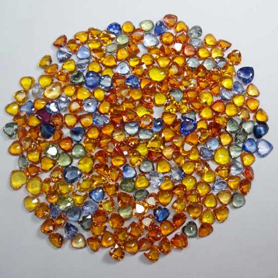 This is a beautiful collection of natural color sapphires. The sapphires are finely polished and cut into delicate heart shapes to please ladies’ eyes. The multiple choices of colors are perfect for various designs of ladies’ jewelry.