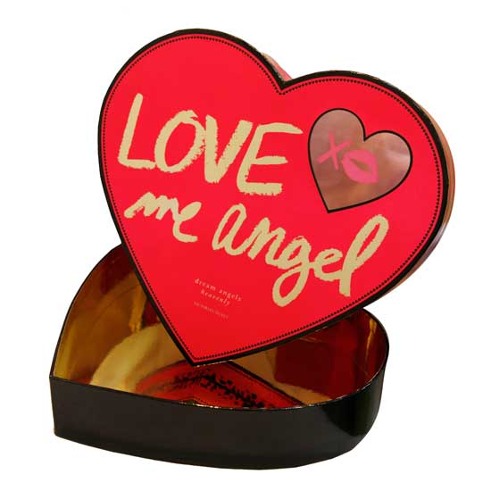 This gift box comes in a unique heart shape. The box features the words 'love my angel' on its cover red cover. It is finely manufactured for a long lifespan.