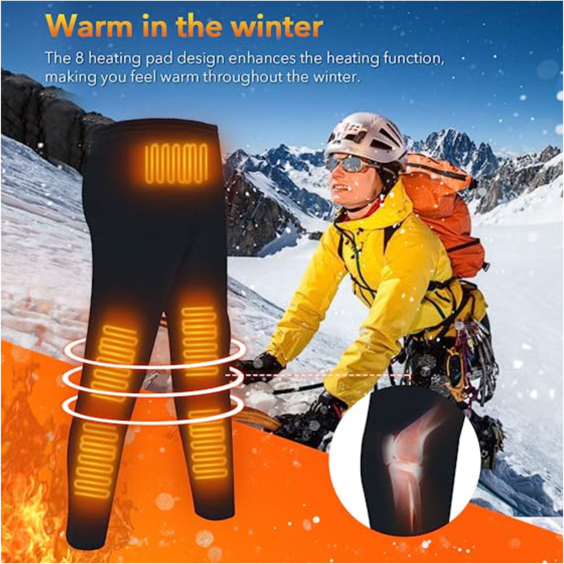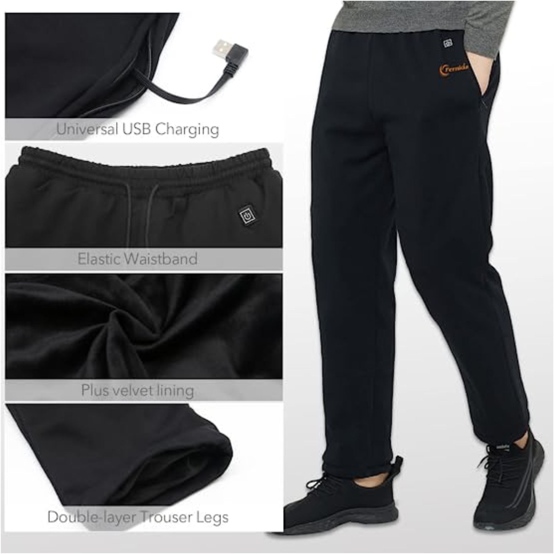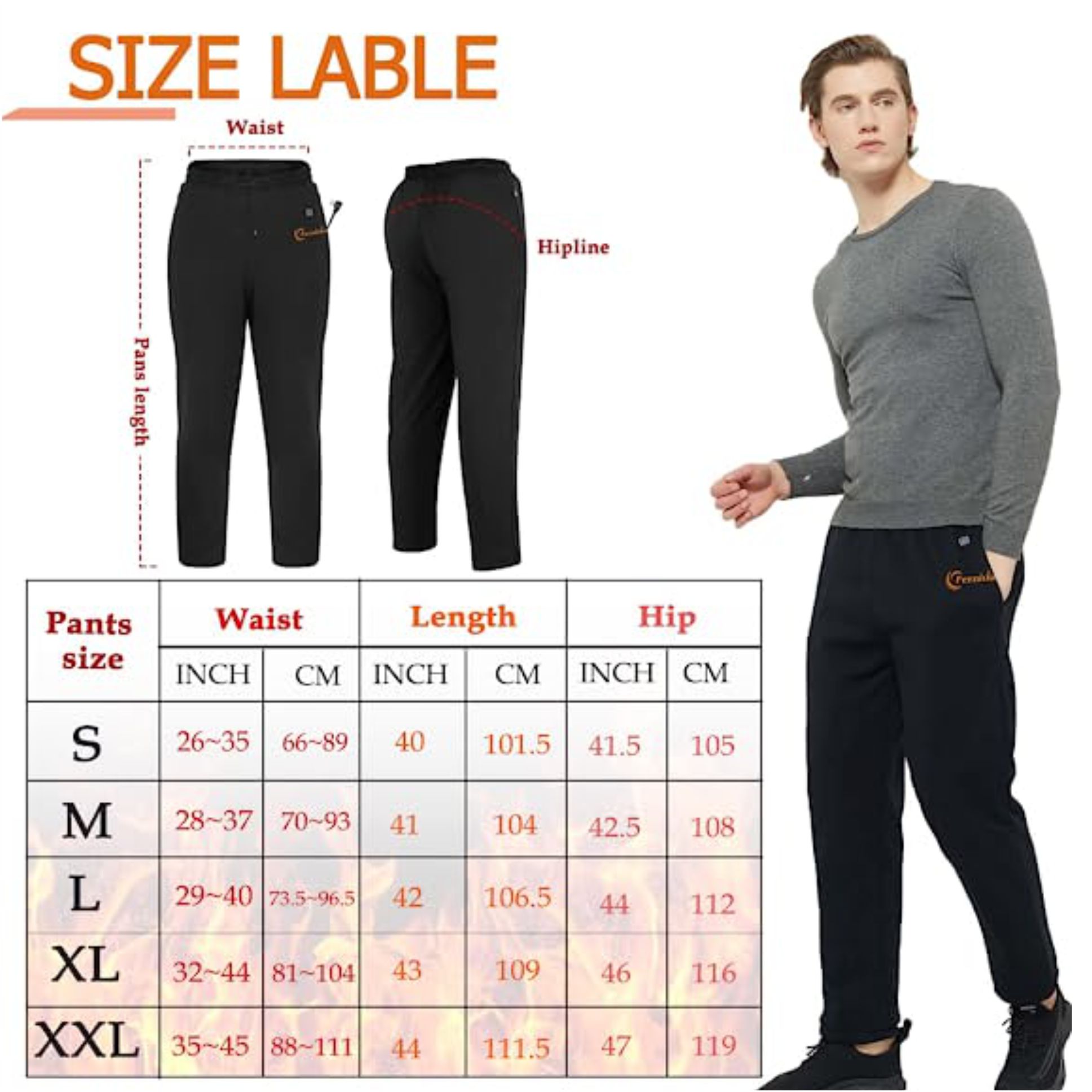 UNIVERSAL USB CHARGING : No longer limited to fixed batteries, this warm trouser equipped with a USB plug. 5v safe voltage, can be compatible with most charging treasures on the market.