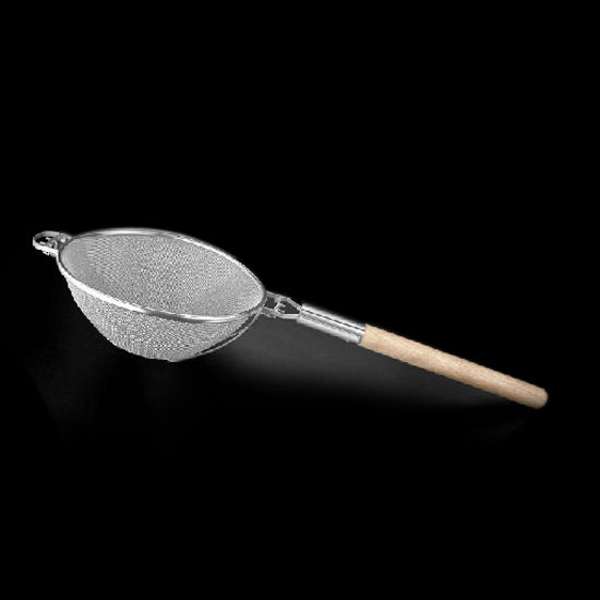 This is a heavy duty strainer that is mainly used in hotels and catering business. It comes with a wooden handle for easy grip. The robust and strong structure ensures an extra-long lifespan.