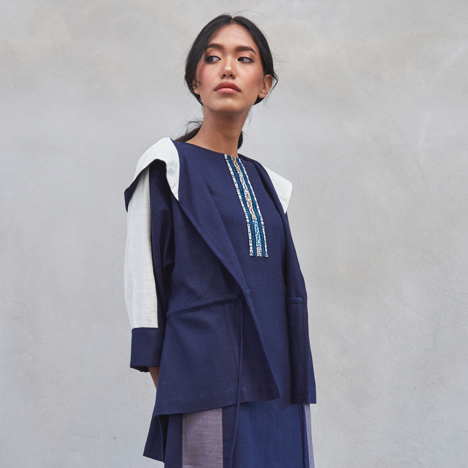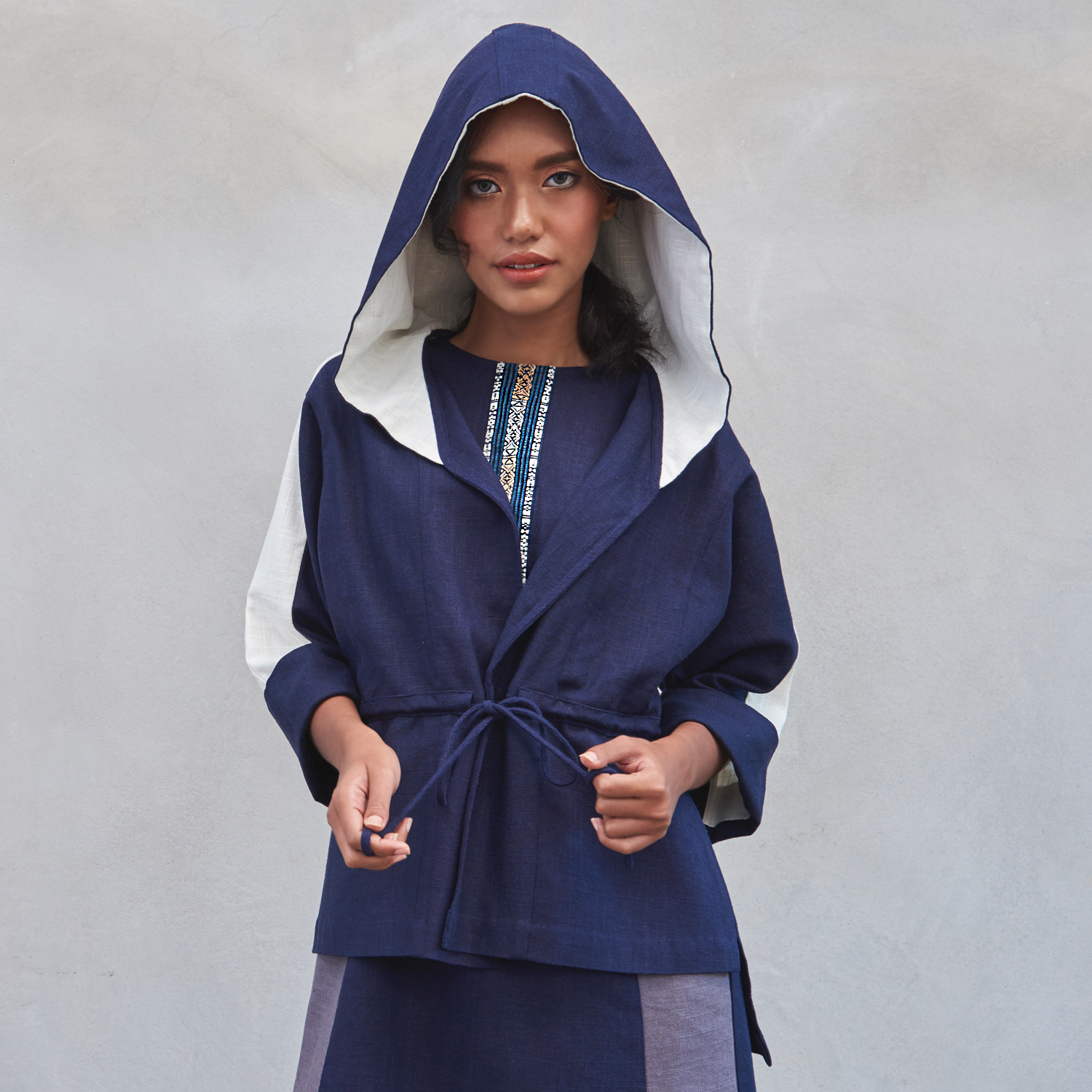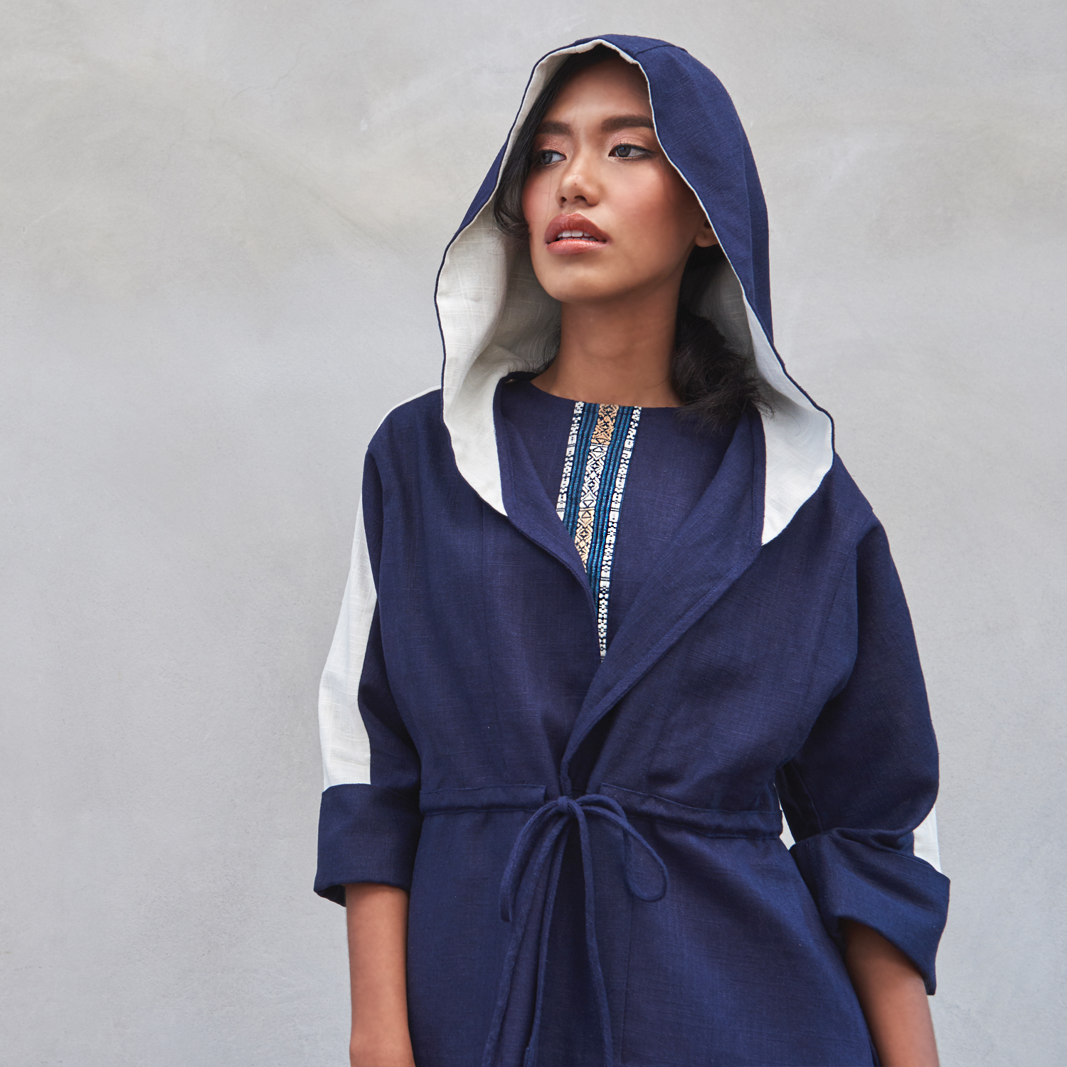 Add a flaring addition to your wardrobe with this hooded jacket. Capturing attention with its two-toned style, the UV-resistant jacket is fashioned to the finest with hemp fabrics to land a pleasantly soft and smooth touch on your skin. Cast with a relaxing silhouette, it can be easily adjusted with a drawcord waistband to outline the narrowest part of your hourglass figure.