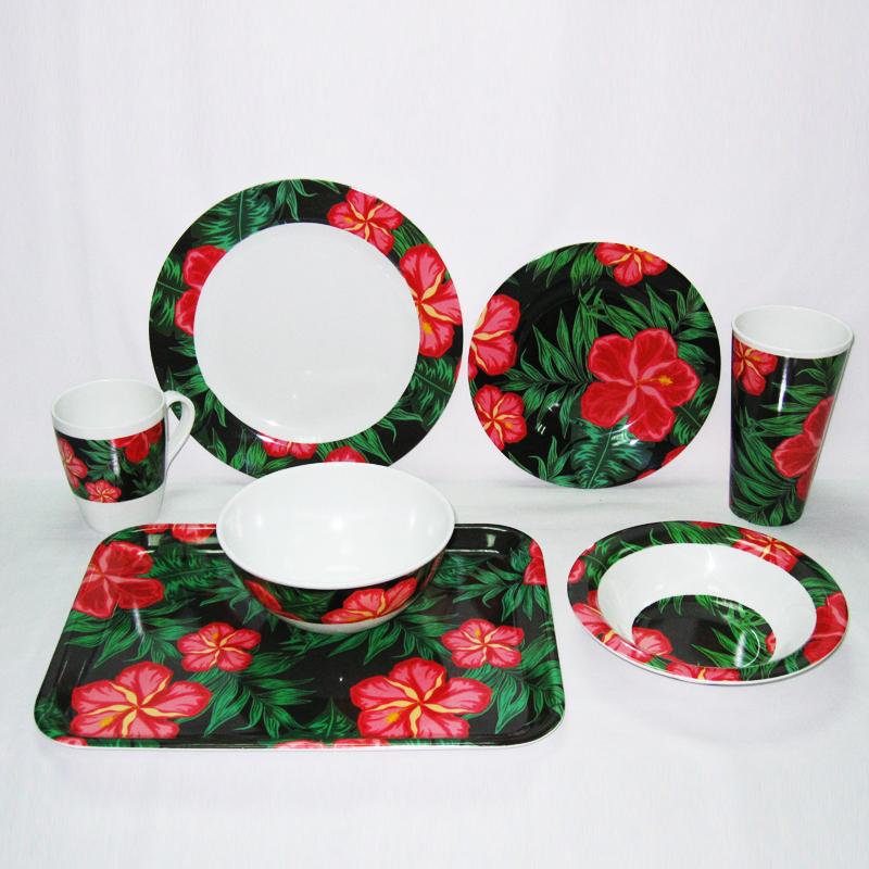 Hibiscus Design Melamine Plate Bowl Cup Tray