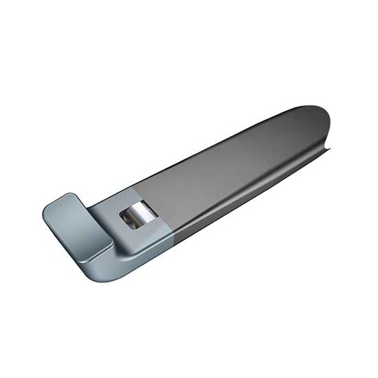 This featured spring hinge is designed for injected and aluminum frames. It is made of nickel silver to create a sleek and modern appearance. This spring mechanism can be fixed with a self-threading screw.