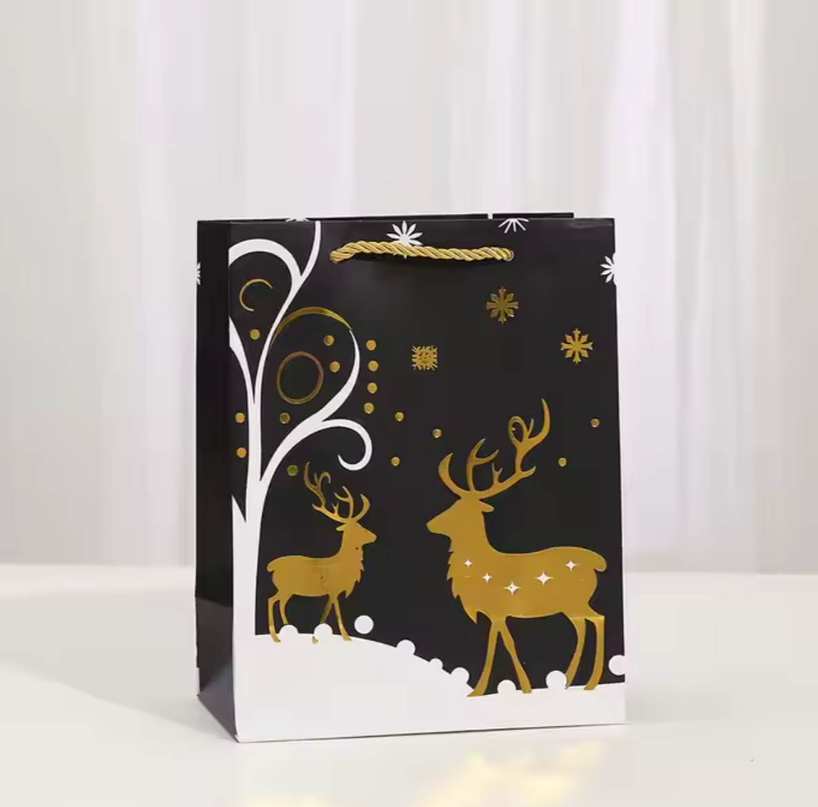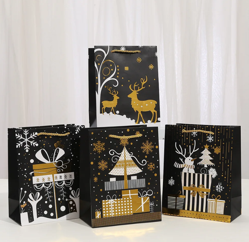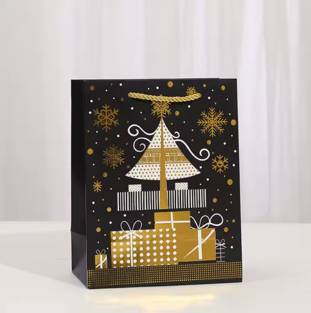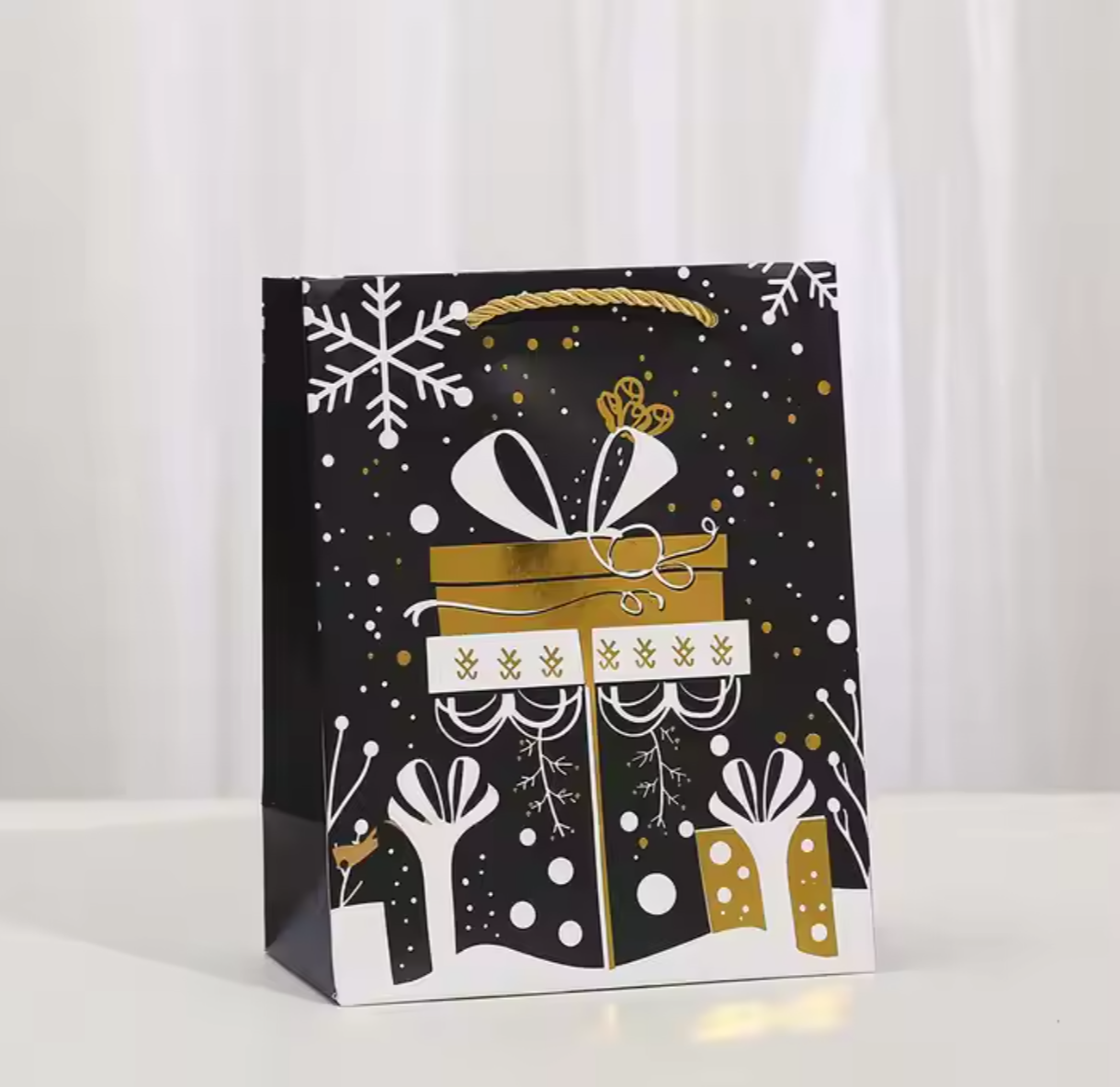 High-End Black & Gold Luxury Paper Design Christmas Gift Bag Foreign Trade Fashion Shopping Food Enhancing Holiday Atmosphere