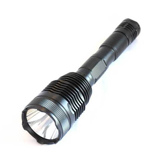 This high-power LED torch is constructed of a sturdy aluminum housing in a matte black finish. The LED torch emits bright and intense light beam in the darkness. It boasts a long battery life and requires little maintenance.