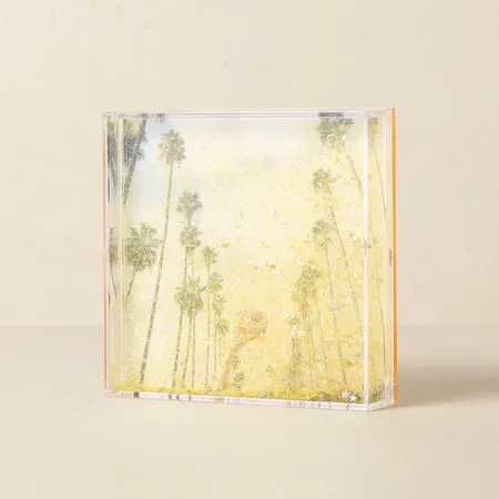 Square glitter photo frame with a tinted magnetic back plate that is perfect for displaying your favorite photo. Fits 4x4” photo, filled with water and shimmering glitter inside.