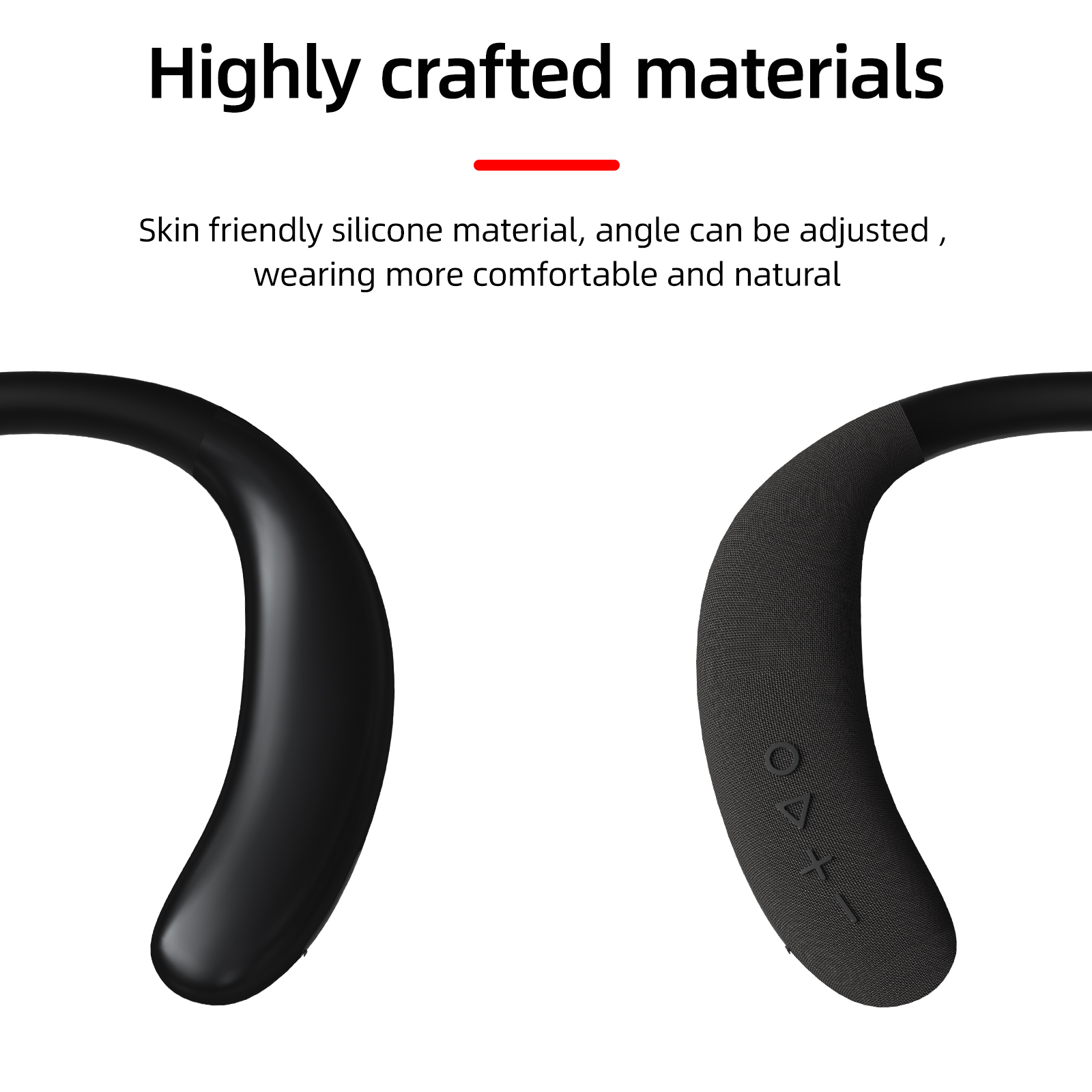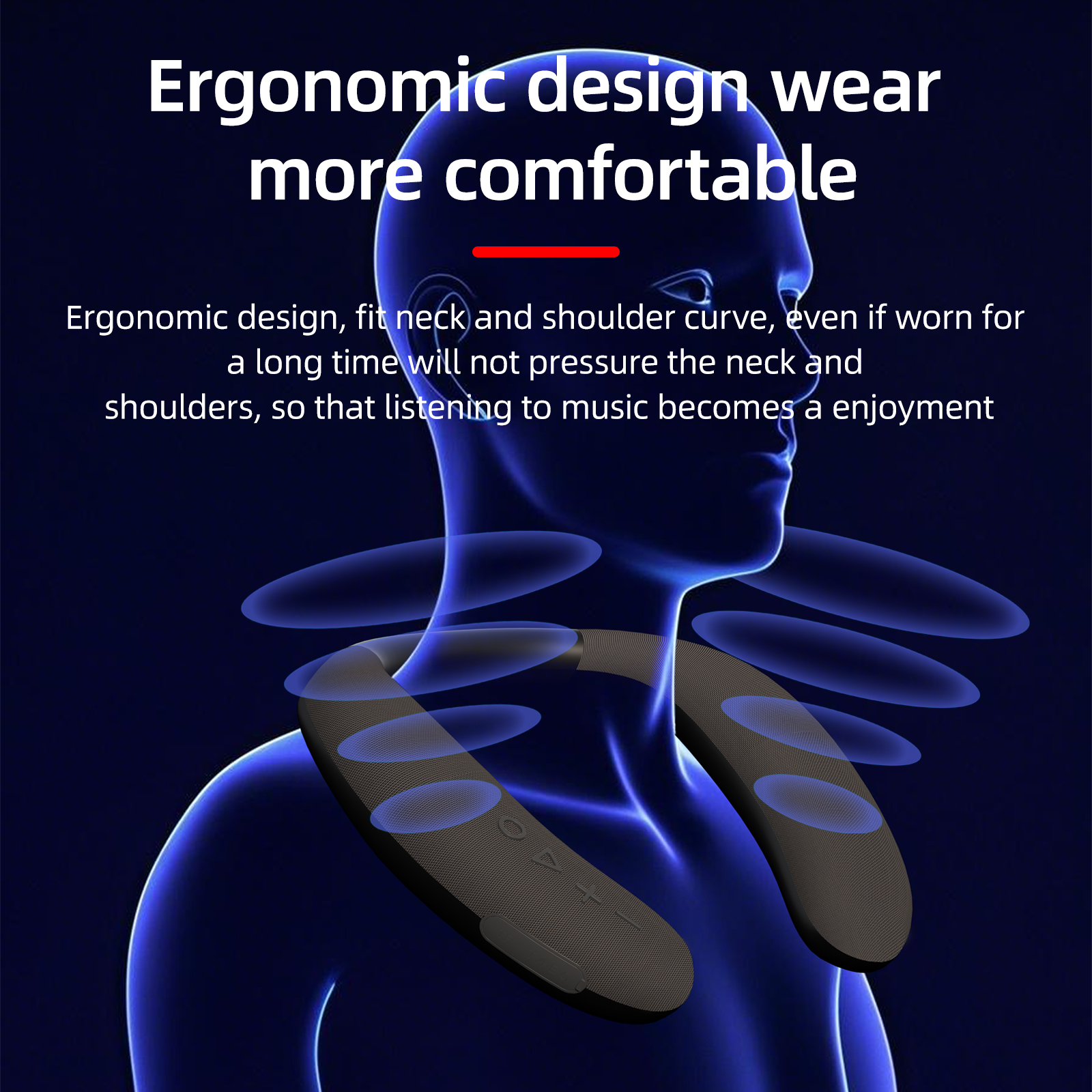6. Ergonmic Neckband Wearable Speaker: The neckband type based on ergonomic design, the surface is made of soft-touch silicone, which bends and fits the neck, Enjoy music anytime and anywhere