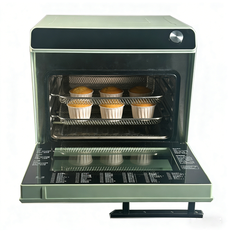 This all-in-one countertop cooking machine redefines home meal prep, combining the power of an air fryer, convection oven, toaster, and roaster in a single sleek unit. Designed for modern kitchens, it delivers professional-grade results with minimal effort, making it the perfect companion for busy families and home chefs alike.