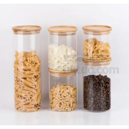 Description:High borosilicate glass jar with stacked up bamboo lid
