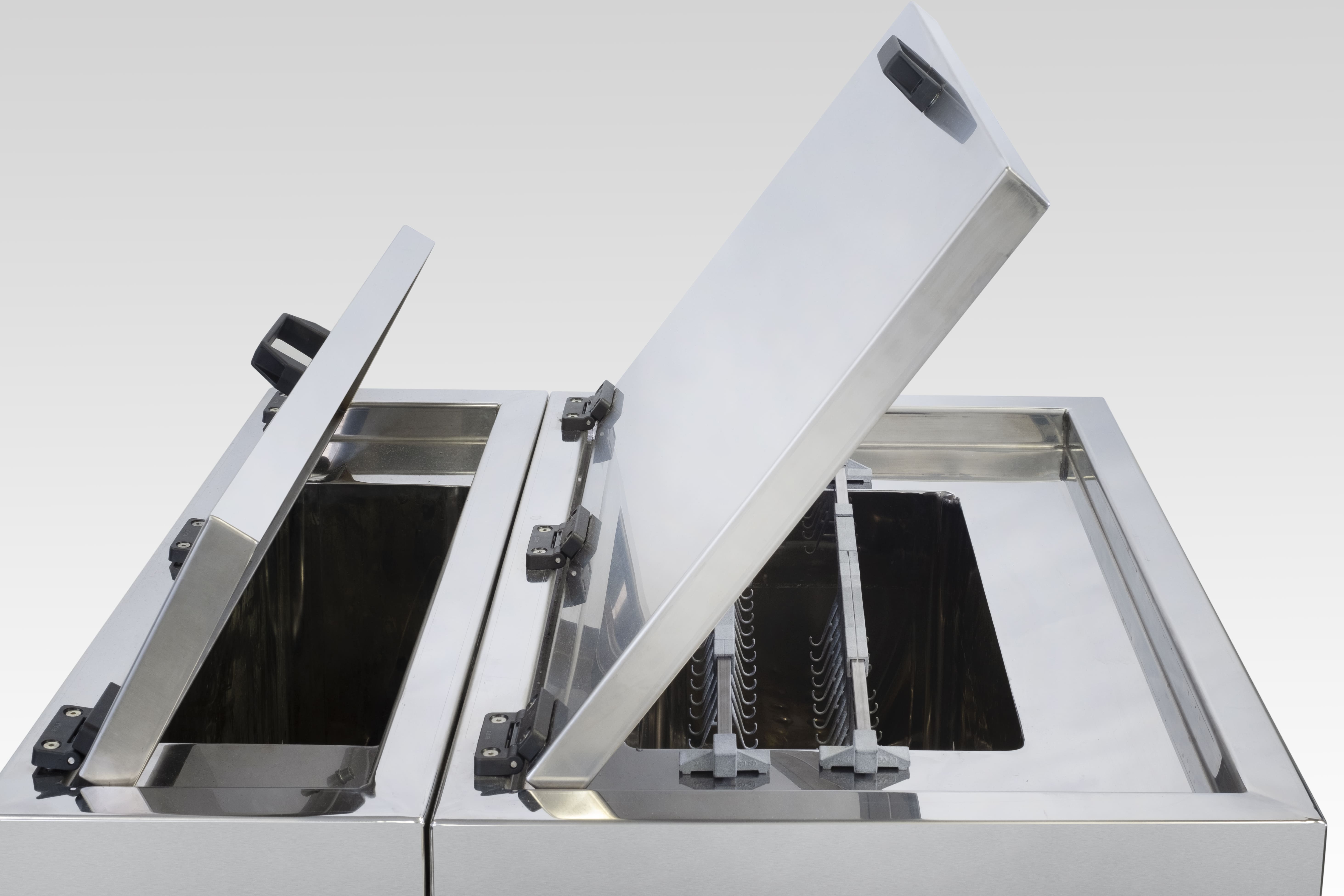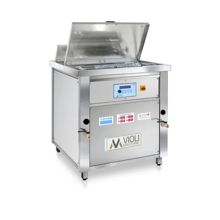 Special machine with continuous water recirculation system that allows to remove the oil extracted from the workpieces from the surface of the tank, so that when they are removed they are not contaminated.