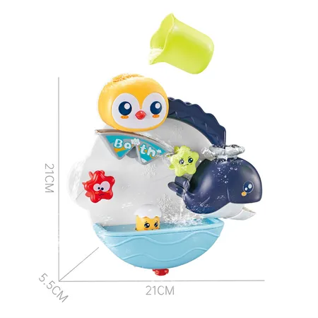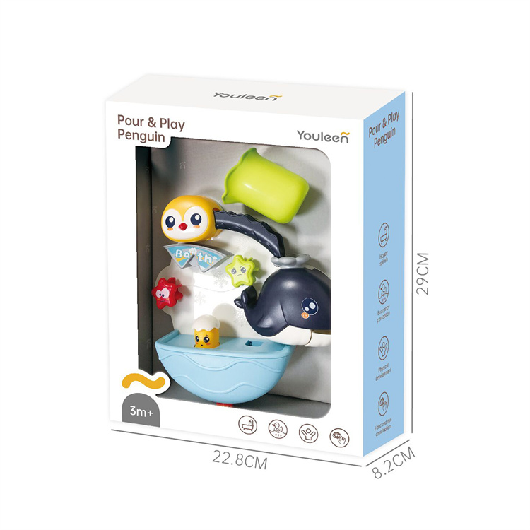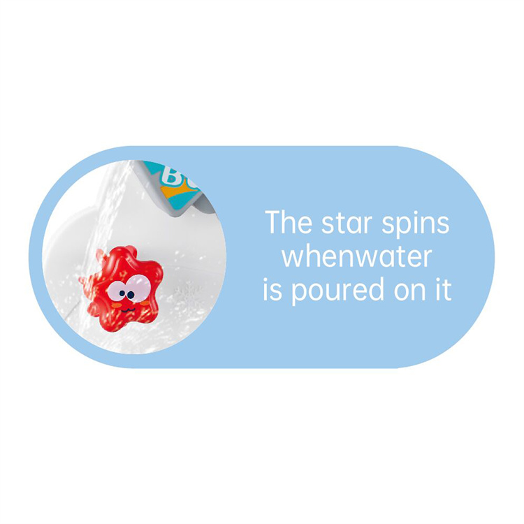 1: Equipped with a water cup, you can pour water into the basin and the little penguin will surface to exercise your baby's hand-eye coordination ability. 2: When the water rushes down, the stars will follow the rotation and the whale's mouth will also m