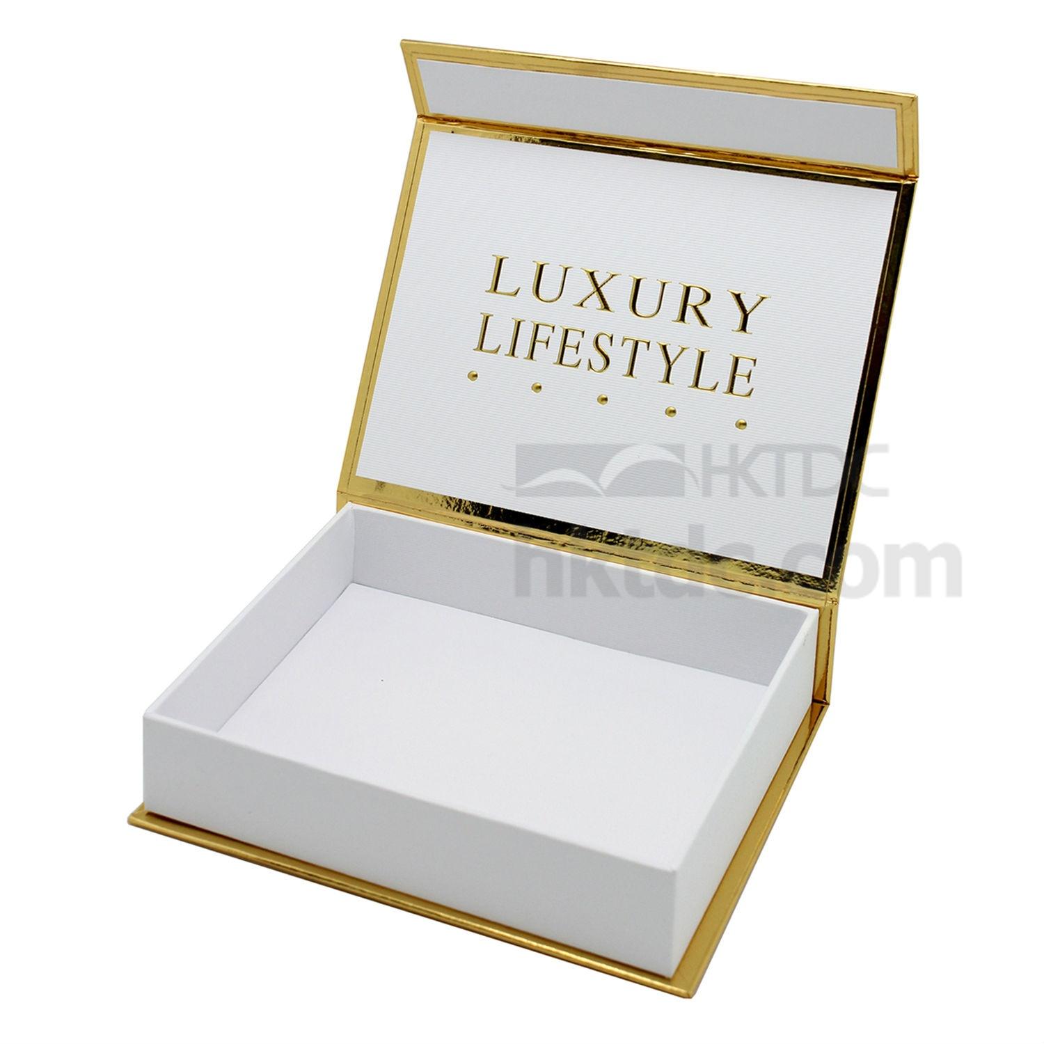It is made of luxury fancy paper with hot stamping and embossing effect, front flap can be opened for decoration.