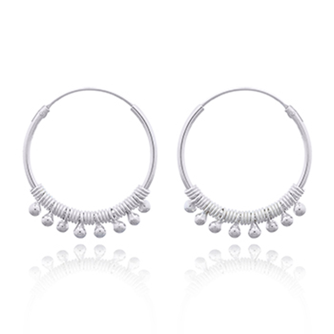 Hippie Beaded Sterling Silver Hoop Earrings