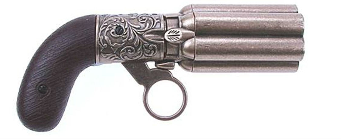 In miniature of Belgium Mariette pepperbox pistol, year 1839 made of alloy with antique brass finishing