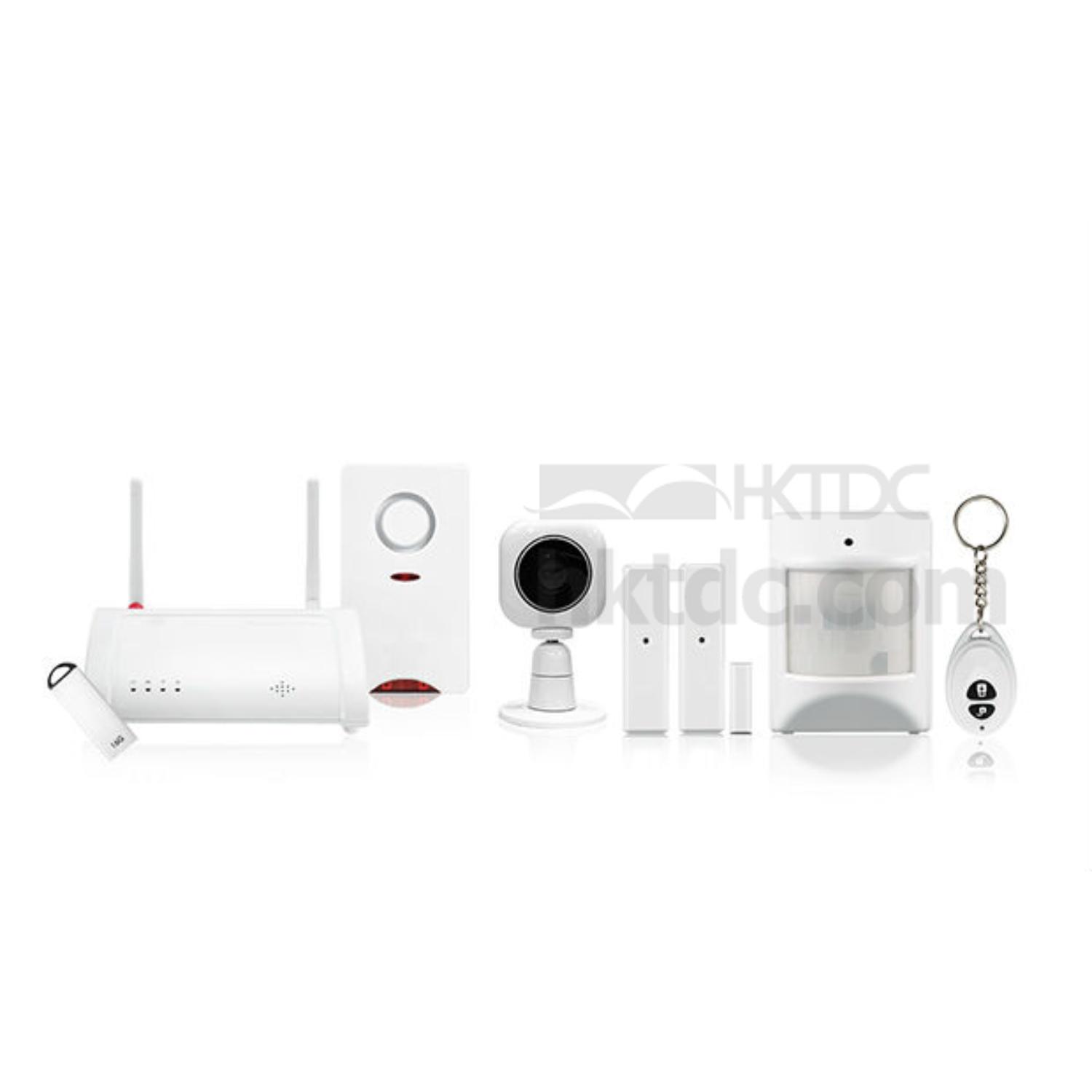 This kit includes: one Shuttle intelligent hub, one Siren, one Motion Sensor, two Door+ Window Sensors, one Keychain Remote and one Mini Cube HD Camera.
