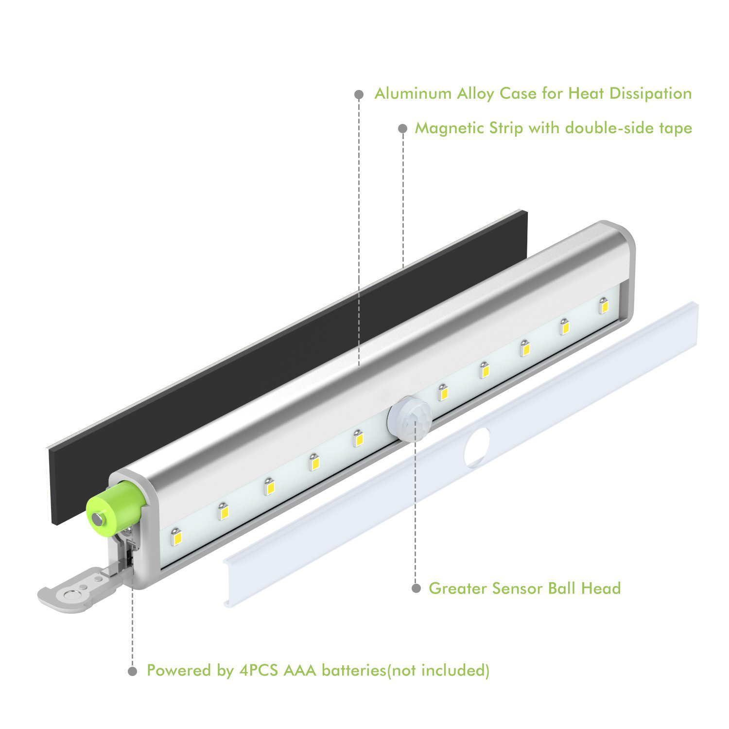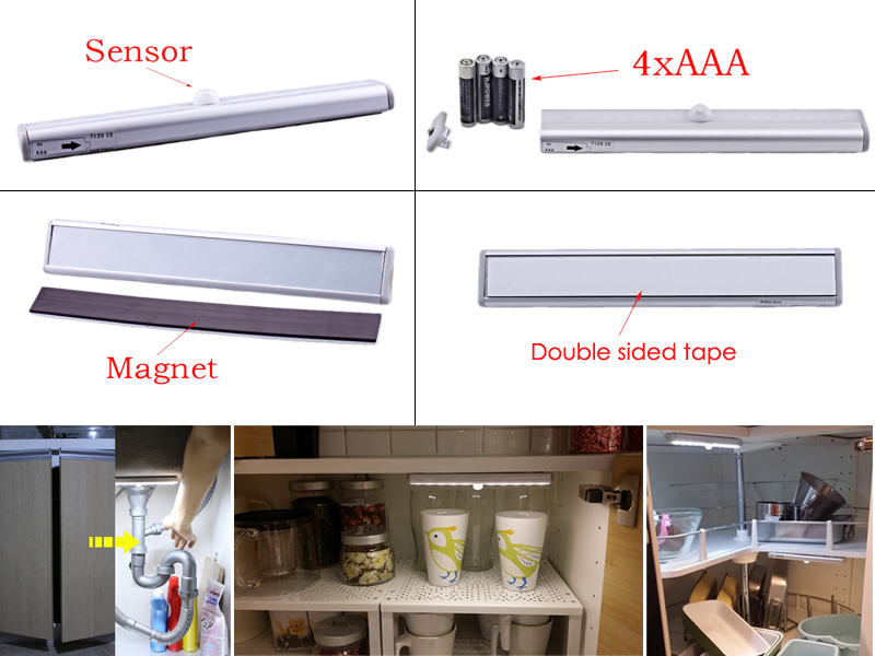 Home Decor Light Double-sided Adhesive 150 Lumen 4*AA Batteries 10*2835 SMD 2 Situations Sensor On/O