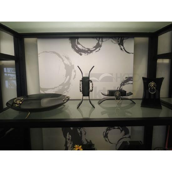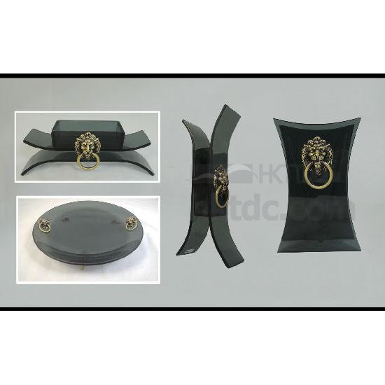 This glassware set comes with 2 Vases, Candle holder , Tray . This collection is Simple of Chinese Lion . The Vases , Candle Holder, Tray add a stylish touch to your room.