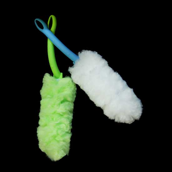 The pictured duster comes with a durable handle for easy holding. This duster is made of high-quality PP and PE for added durability. There are two designs for your selection.