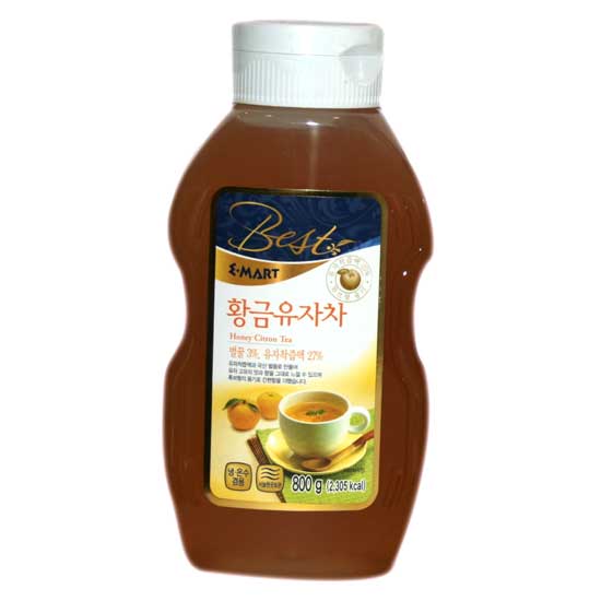 Showcased is a bottle of honey citrus tea with a sweet taste and a hint of orange. The condensed tea can be prepared with hot water and gives a rich and smooth texture. This honey citrus tea is refreshing and healthy to serve with snacks.