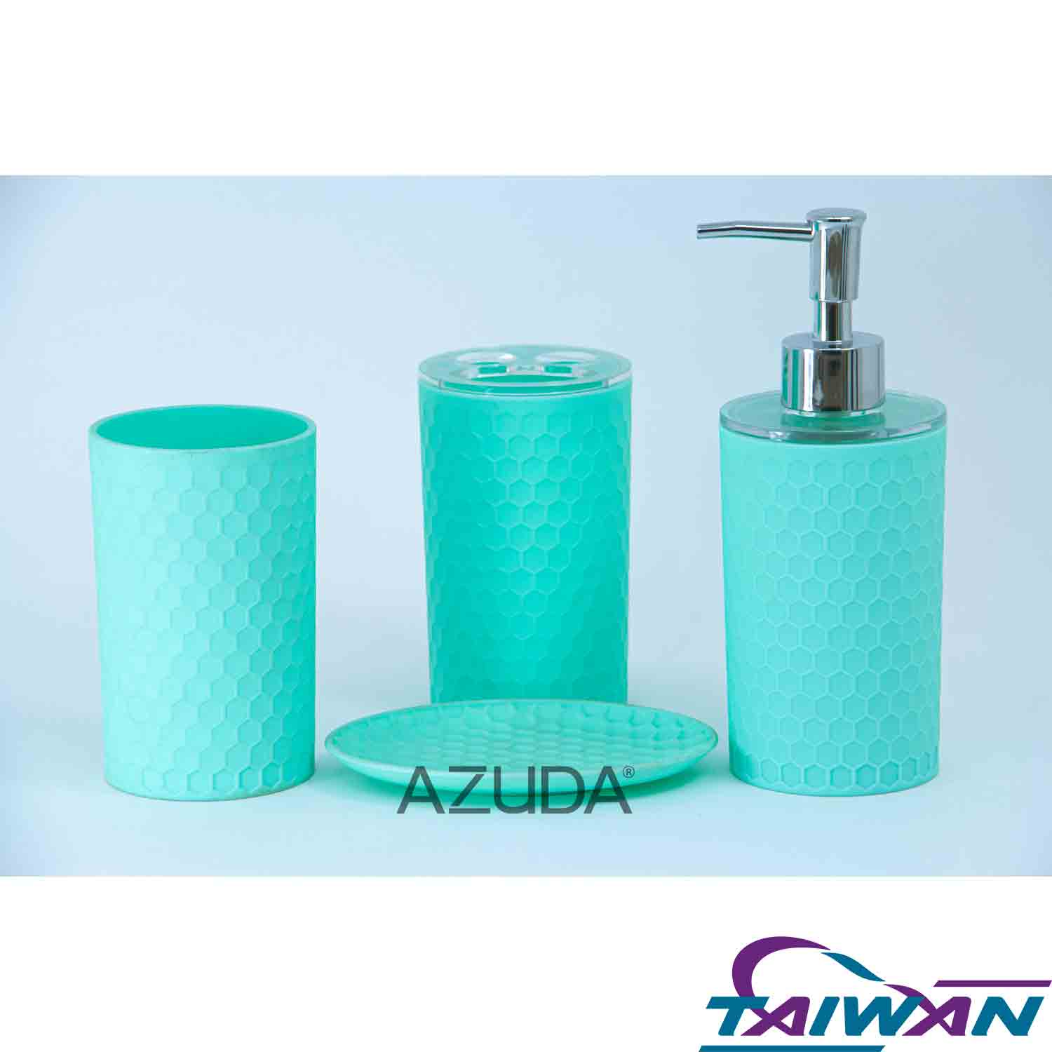 MS bathroom accessories including lotion dispenser, toothbrush holder, tumbler and soap dish. Honey comb hammered design in opaque solid color with multi-surface give you sparkling refraction. Glassy transparent appearance can enhance wide variety of bathroom decorations. With honey comb bathroom accessories, you will sure have more delicate visual enjoyment.