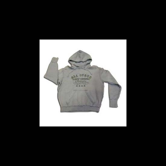 This is a hooded fleece cardigan for teenages in a grey colour with black prints