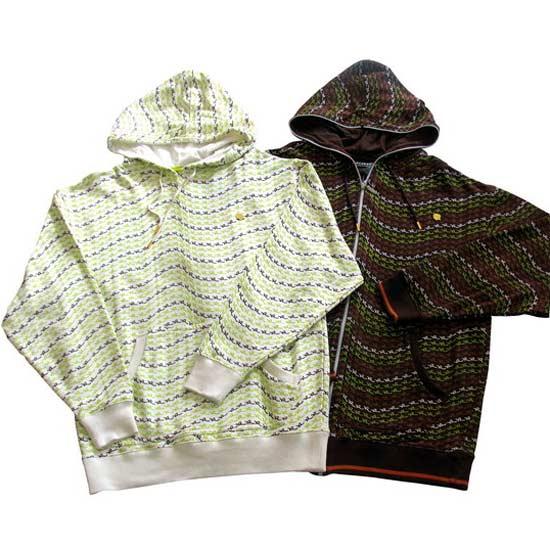 Featured is a men's sweat shirt with a hood. It is imprinted with abstract patterns for a touch of uniqueness. This swear shirt is an ideal casual wear item.