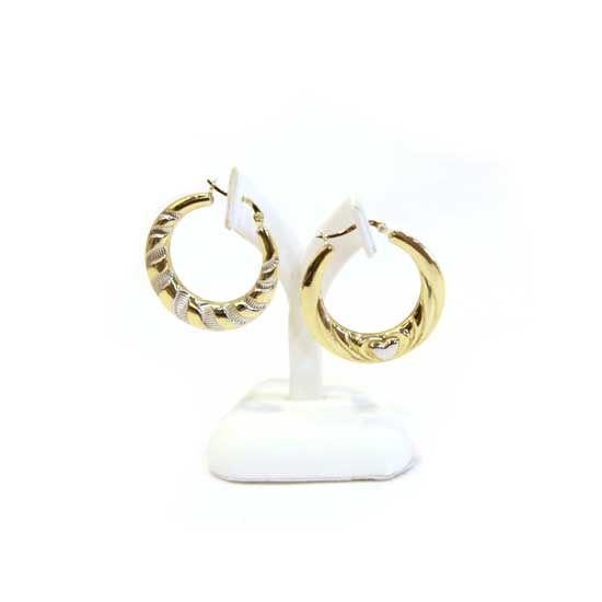 These alluring earrings feature a hoop design. The glittering earrings are made of silver with gold plating. The hoop earrings are secured with saddle-back clasps.