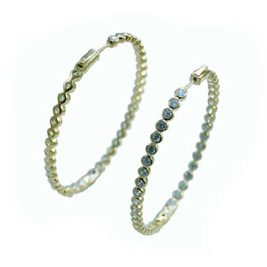 This is a pair of hoop earrings made of 925 silver. It is designed with round elements which are meticulously inlaid with shimmering CZ stones. This pair of hoop earrings surely is a great accessory for various kinds of fashionable outfits.