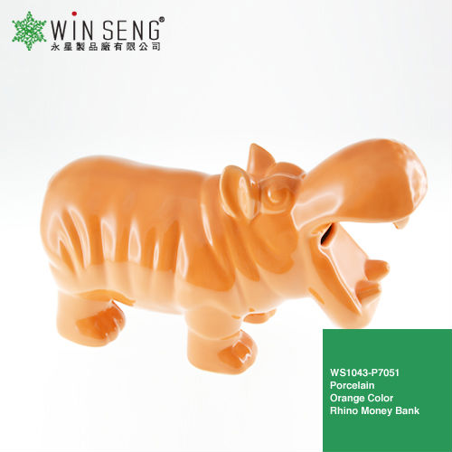Hot Sale Porcelain Orange Colour Rhino Saving Bank