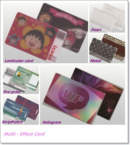 Manufacturer: Gloss / Matt / Frosted Varnish, Gold / Silver Card, Hot Stamping, Laser Engraving, Digital Printing, Barcode Printing, Photo Printing, Signature Panel, Hi/Lo Magnetic Strip, Strip Punch, IC Chips etc…