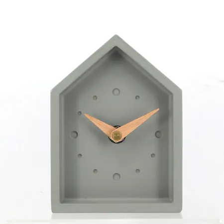 House shape table clock,cement material, wooden hands