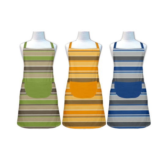 This household apron comes with striped patterns for long lasting beauty. It protects your clothes from dirt and water. It is suitable to wear while cooking food and washing dishes.