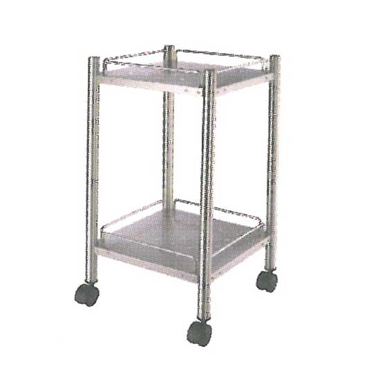 This is a household cart with two tiers in a square shape. It is sturdily constructed for long-lasting use. The sturdy wheels allow users to move it with ease.