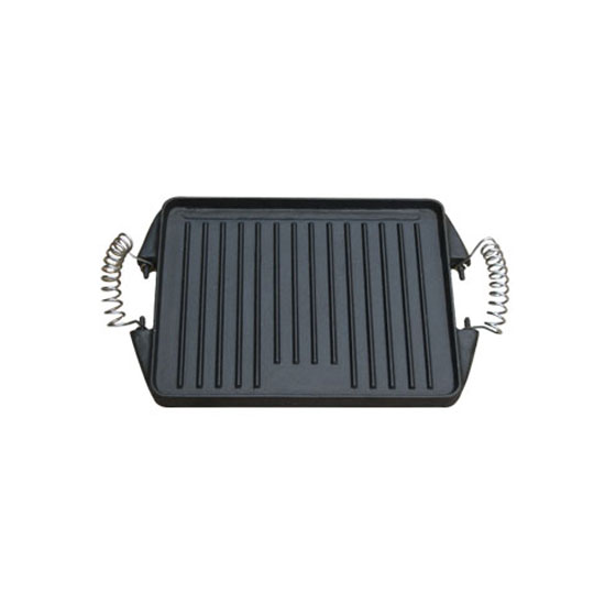 This griddle comes with an allover black finish. It features a large cooking surface to grill meat and vegetables. It is suitable for both restaurants and households.