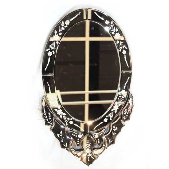 Displayed is a household mirror bestowing an oval shape. Graceful floral patterns ornament around the rim for an added style. This smooth and shining mirror makes a supreme decoration for styling your room.