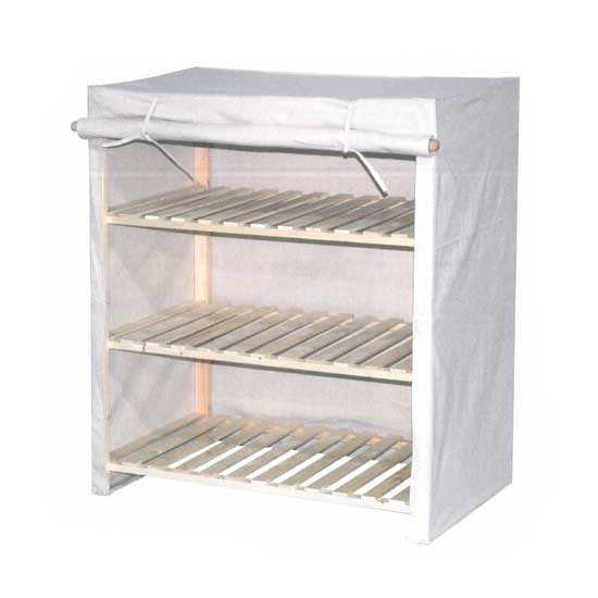 This 3 layered household wardrobe stores your clothes in an organized way. The drapes can be rolled down to hide your personal clothing items. Made of natural cotton and wood, this household wardrobe is simple and good for the environment.