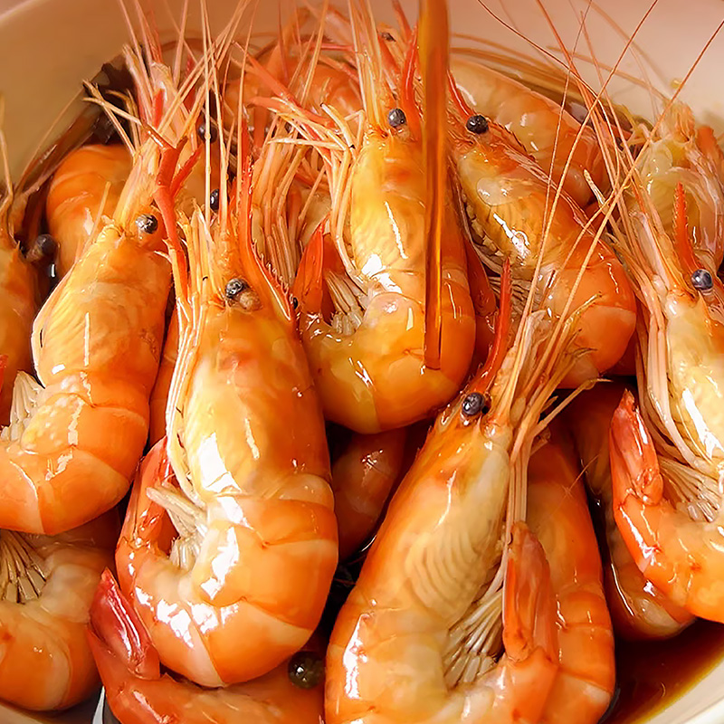 Hua Diao Wine Drunken Roche Shrimp, frozen cooked food product, naturally thawed for consumption, carefully selected Roche Shrimp with Hua Diao wine, and other ingredients, fired.