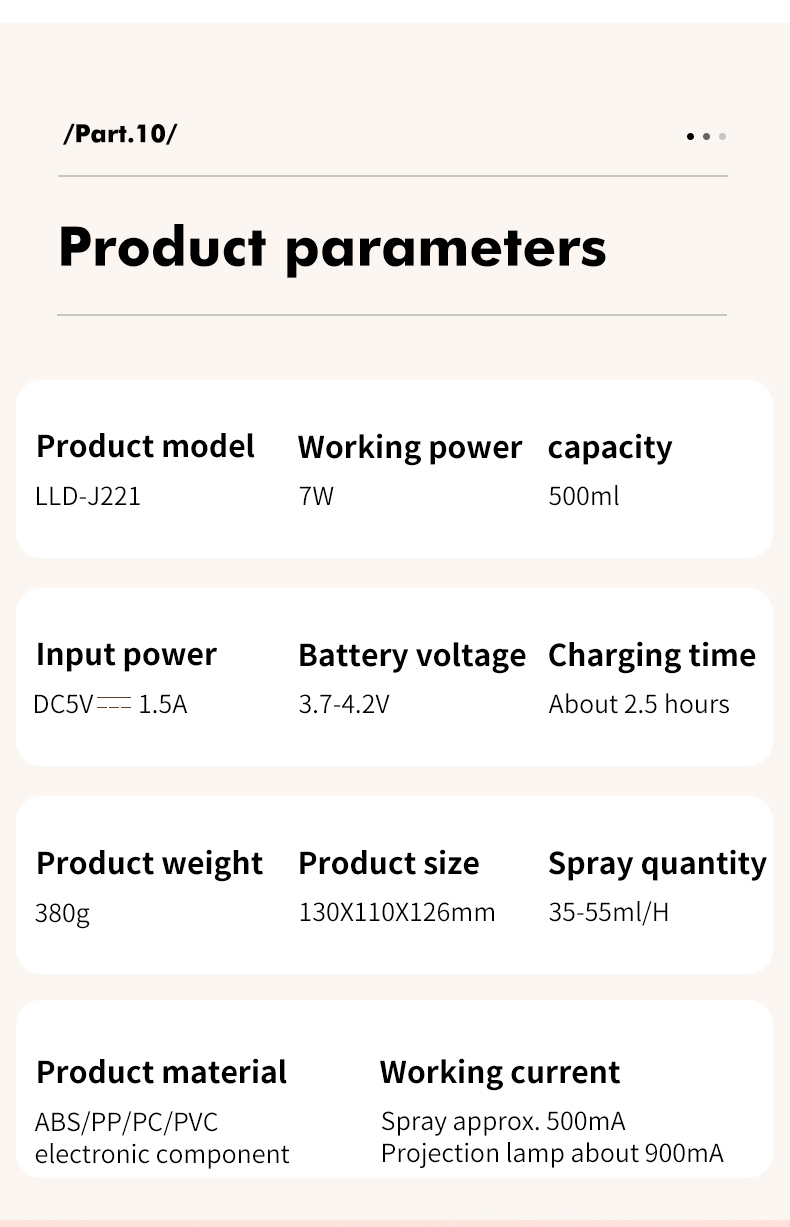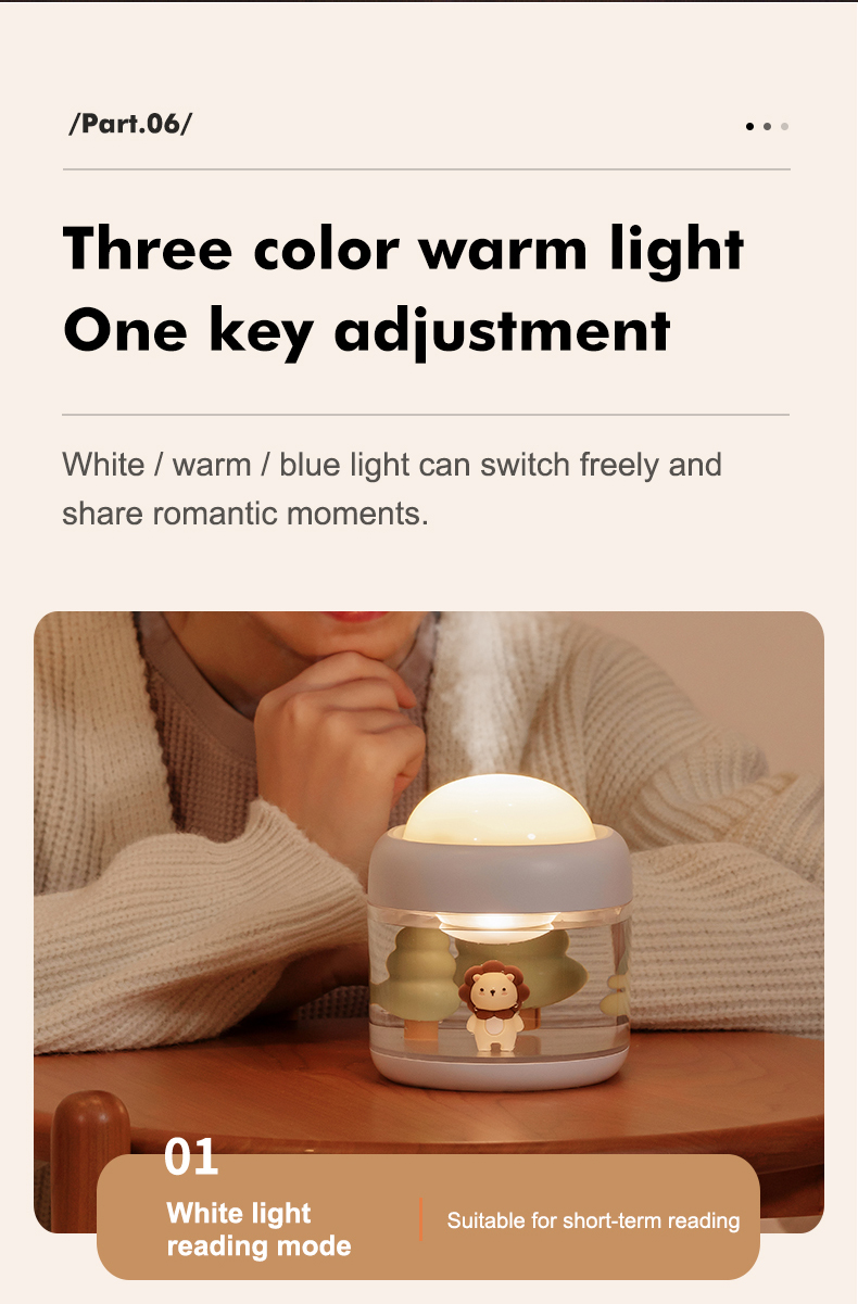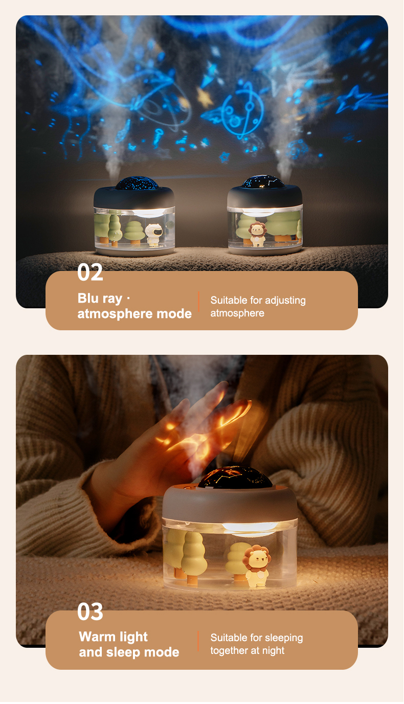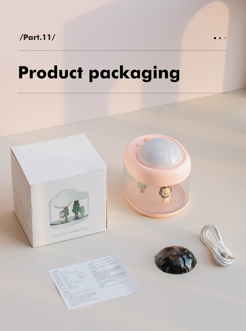 1 set: one humidifier, three pieces of projections, a cotton swab, one usb cable, a manual in Chinese and English