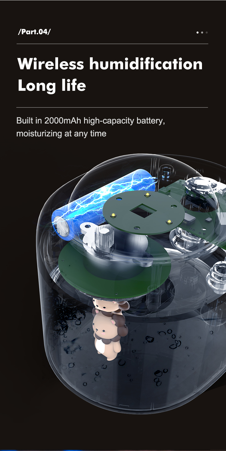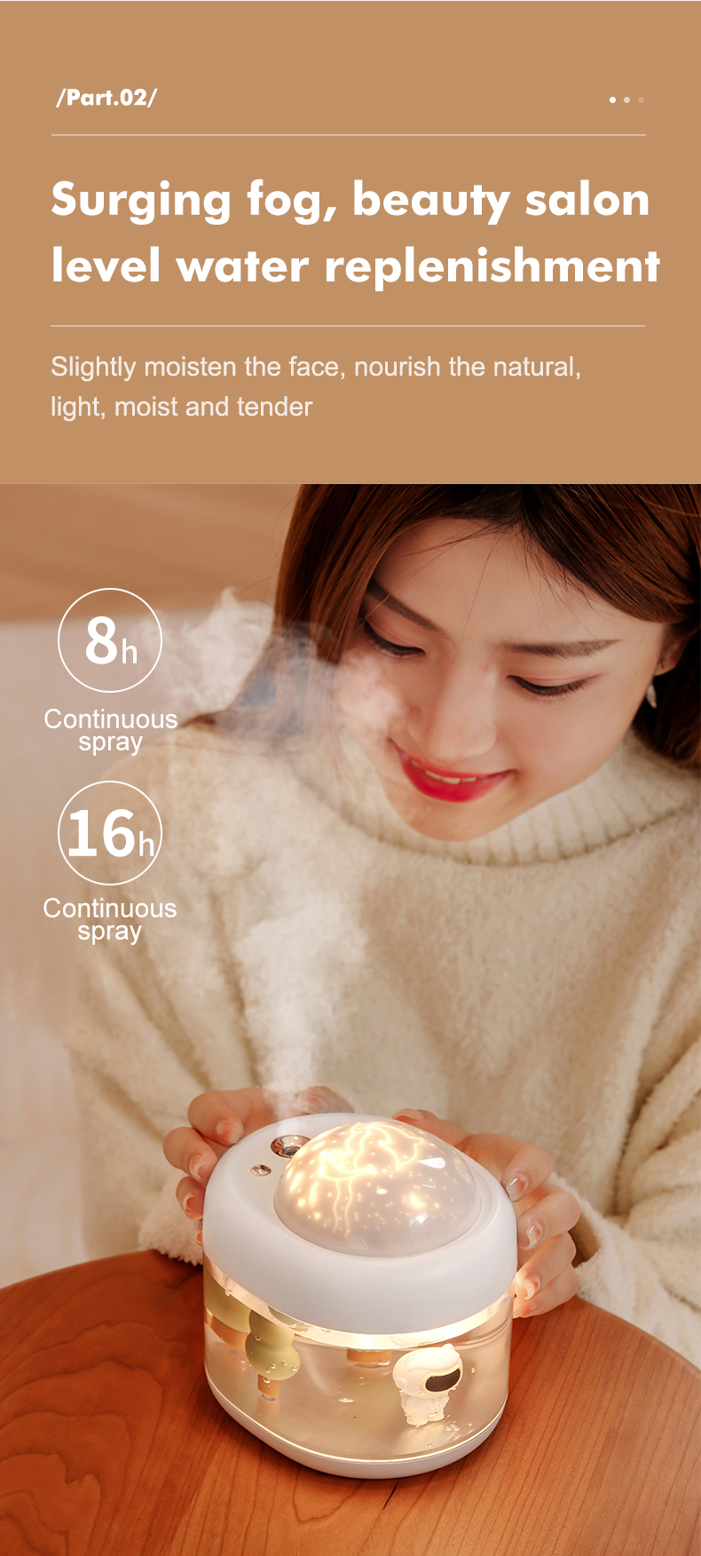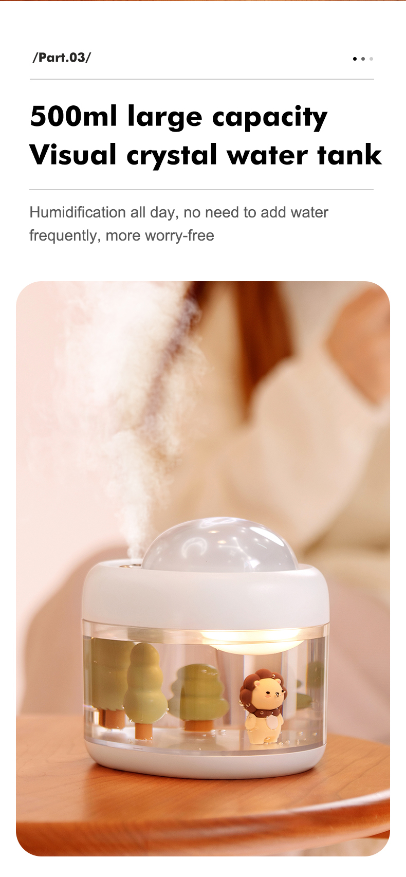 1 set: one humidifier, three pieces of projections, a cotton swab, one usb cable, a manual in Chinese and English