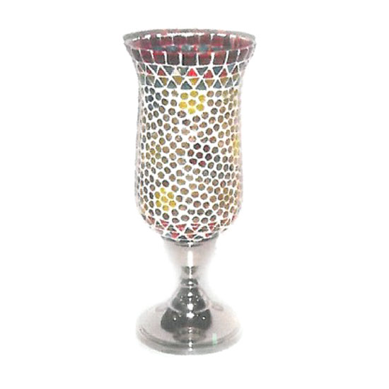 The hurricane candle holder is meticulously designed with mosaic pattern on glass. It comes with a metal base in nickel-plating finish. This stylish candle holder is surely to add a great touch of elegance for your home decor.
