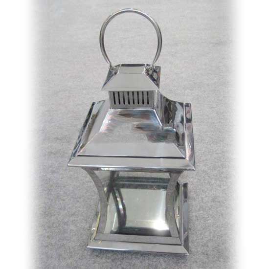 This displayed hurricane lantern is made for portable and outdoor use. Made of rigid stainless steel material, it ensures rugged construction. This refined hurricane lantern can be a home decoration.